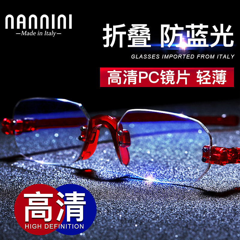 天猫意大利正品牌老花眼镜女士超轻时尚防蓝光抗疲劳折叠男式高档高清