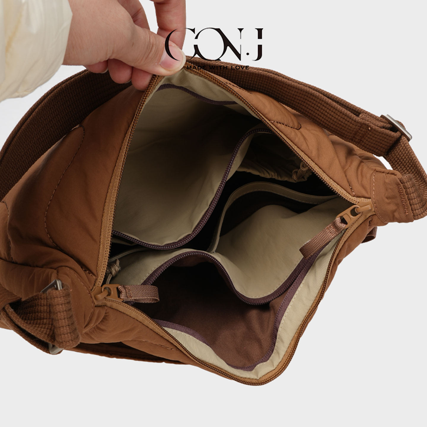 CON.J 2025新款斜挎包,专为都市女性打造的轻便休闲单肩包,融合时尚与实用。采用优质轻量材质,小巧饺子包造型,线条简约流畅,百搭不挑风格。包身设计紧凑,却可容纳手机、口红、钥匙等日常 essentials,内设贴心卡位,方便取放。可调节肩带设计,斜挎、单肩随心切换,解放双手,出行更轻松。无论是逛街、约会还是短途出行,都能轻松驾驭,尽显随性 chic 气质。多款配色可选,满足多样穿搭需求,是2025年出街必备的时尚单品。