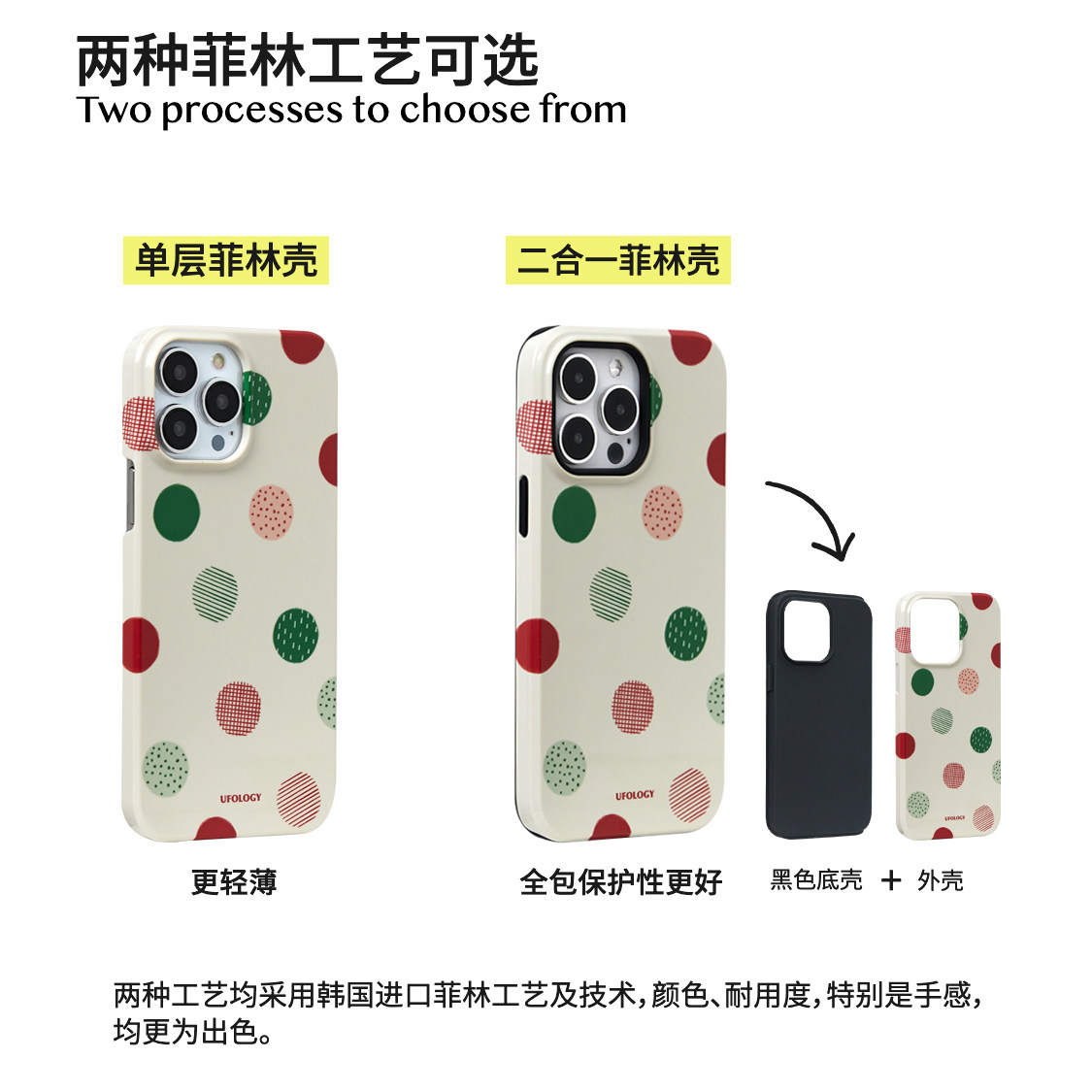 Ufology原创圣诞波点系列手机壳,专为iPhone 11至16 Pro Max等多款机型设计,包括iPhone 12、13、14 Pro Max及15 Pro Max等,实现全包防护与精准开孔。采用高品质菲林材质,轻薄透亮,还原机身质感,同时具备防摔耐磨特性。二合一设计融合时尚与实用,圣诞波点元素点缀节日氛围,清新活泼又不失个性。精准贴合每一款机型,按键灵敏,无线充电无障碍。无论是自用还是送礼,都是节日季的亮眼之选,让科技与美学在指尖完美融合,守护爱机更添节日仪式感。