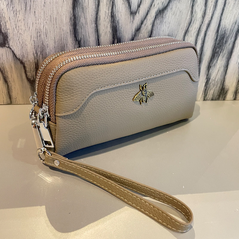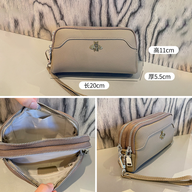 天猫真皮买菜小手包钥匙零钱包手包头层牛皮双拉链手拎手机包简约百搭