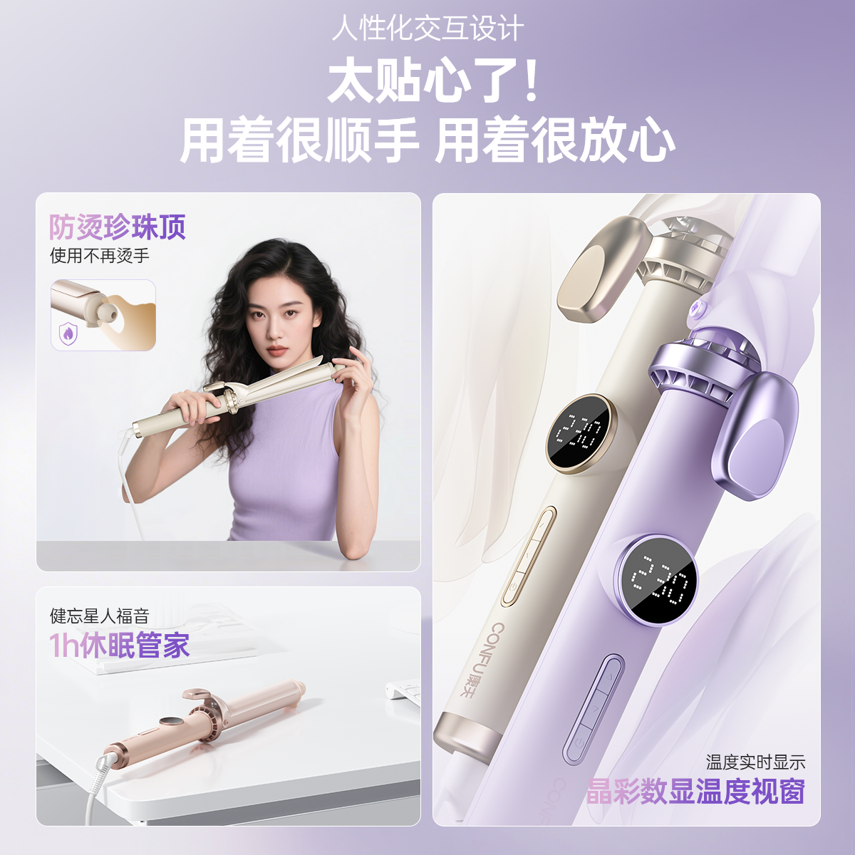 康夫V1手动卷发棒(32mm大卷)是2025年全新推出的卷发神器,专为打造自然蓬松大波浪而设计。采用优质陶瓷涂层发热体,均匀导热,减少对发质的损伤,同时具备快速升温功能,30秒即可使用。32mm大直径卷筒轻松塑造优雅持久的波浪卷发,适合中长发打造浪漫慵懒发型。手动旋转设计操作简便,无需复杂技巧,新手也能轻松上手。机身轻巧便携,握感舒适,搭配防烫手柄和安全温控系统,使用更安心。无论是日常通勤还是约会派对,康夫V1都能助你快速变身魅力女神,是居家造型的理想之选。