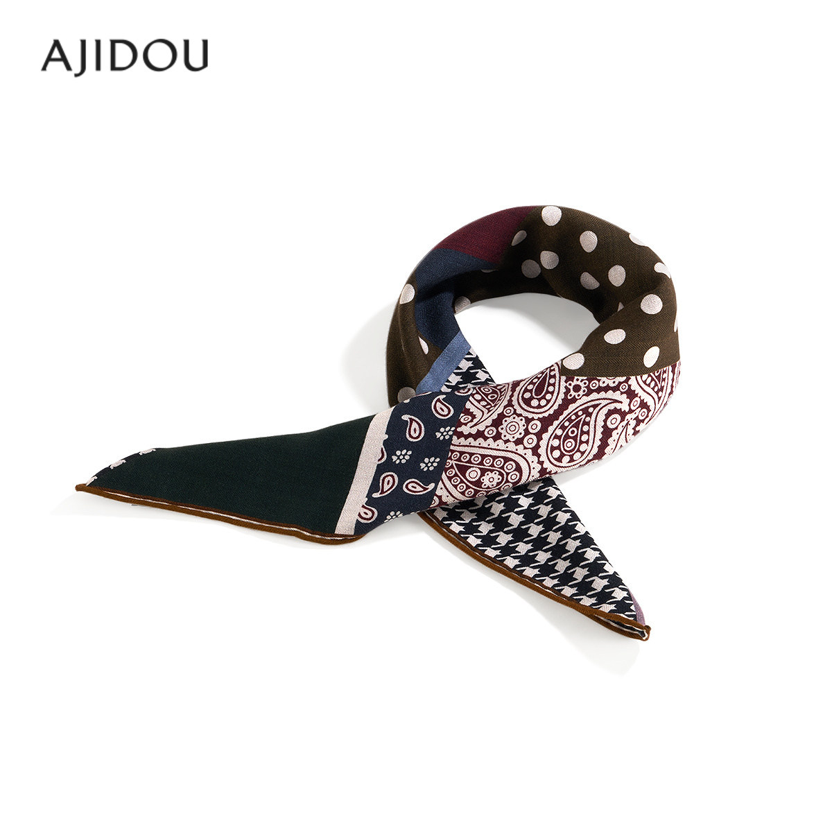 天猫AJIDOU阿吉豆围巾女款羊毛保暖丝巾高级感配饰小方巾护颈拼色领巾