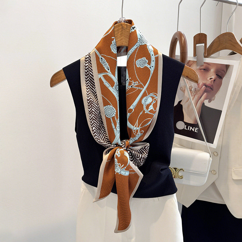 2025新款高级感长条形小丝巾女细窄围巾搭配衬衫领巾夏季飘带绑包