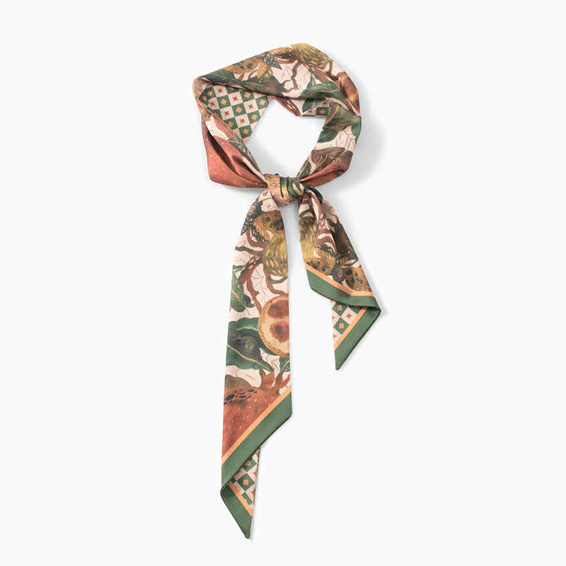 「知雾X设计师」春夏原创丝巾领巾,专为现代女性打造,融合东方美学与时尚设计。采用轻盈透气的优质面料,触感柔滑,佩戴舒适,兼具装饰与护颈功能。小长条设计简约百搭,可轻松系于颈间、手腕或包袋,为职业装、休闲装增添优雅亮点。色彩清新雅致,图案原创精致,展现独特品味。无论是通勤、约会或日常出行,都能提升整体造型质感。知雾以匠心工艺与设计师联名理念,诠释女性柔美与力量,是春夏不可或缺的时尚配饰,让每一位女性在细节中绽放自信光彩。