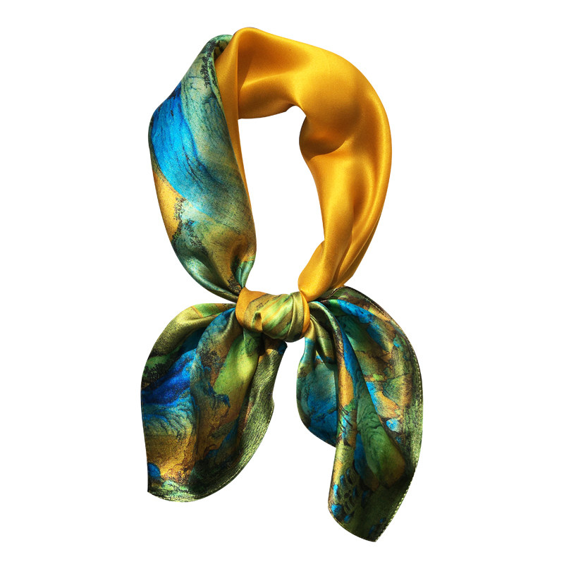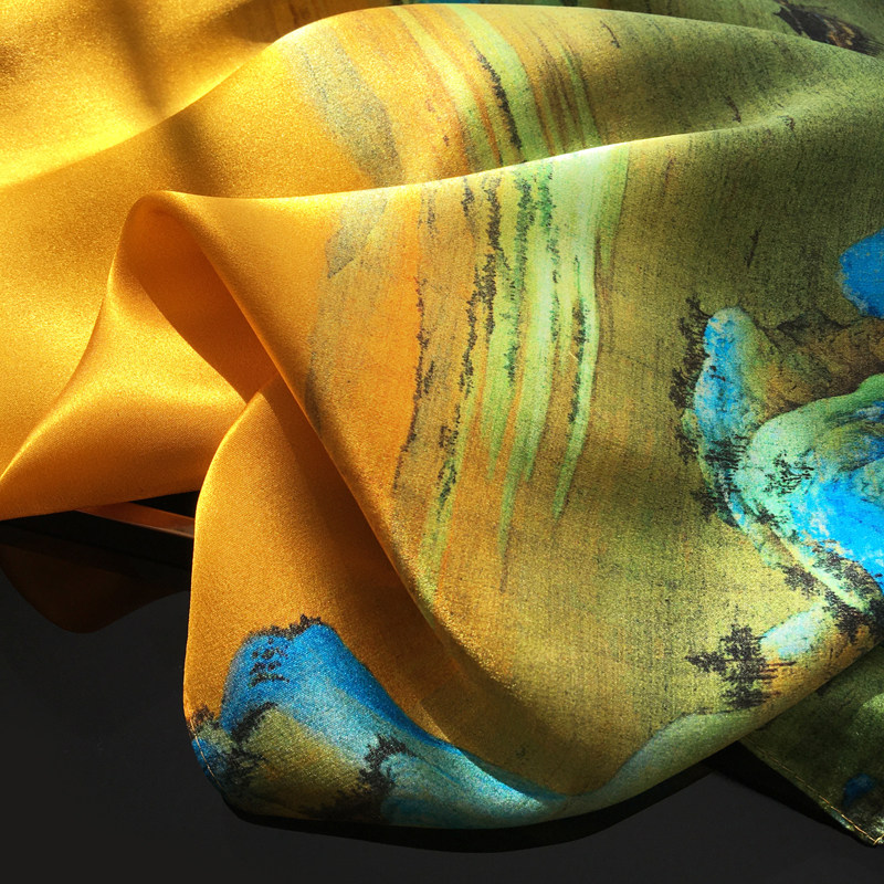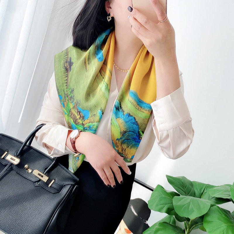 淘宝【千里江山图】优雅中国风100%桑蚕丝方巾时尚百搭真丝丝巾围巾女