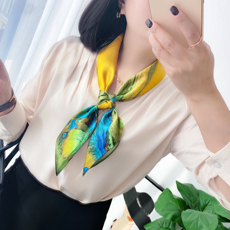 纯色奶白米白色小方巾丝巾女春秋夏季搭配衬衫护颈脖子薄纱巾围巾