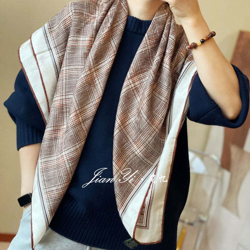 淘宝【迷宫游戏】优雅气质真丝桑蚕丝羊毛88cm大方巾双面丝巾围巾披肩