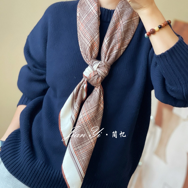 韩系复古咖色波点丝巾女美拉德系脖围巾配饰高级棕色方巾围脖护颈