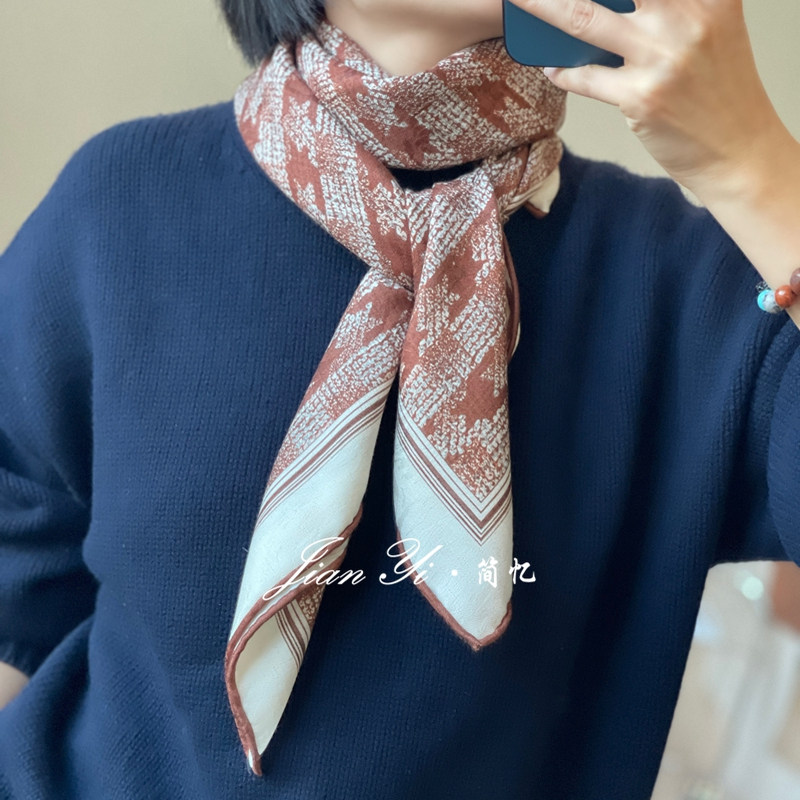 磁扣棉麻小方巾护颈丝巾女2025新款秋冬新款百搭高级领巾懒人围巾