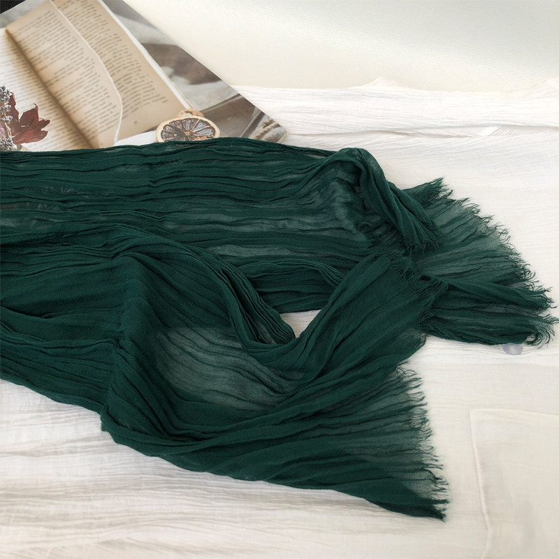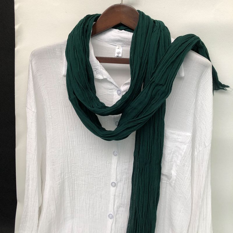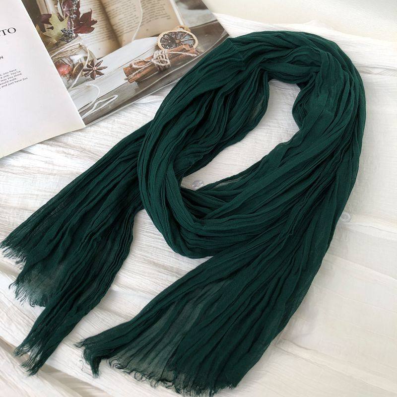 淘宝墨绿色棉麻围巾女薄款春秋百搭窄款护颈椎细长条装饰纯色丝巾夏季