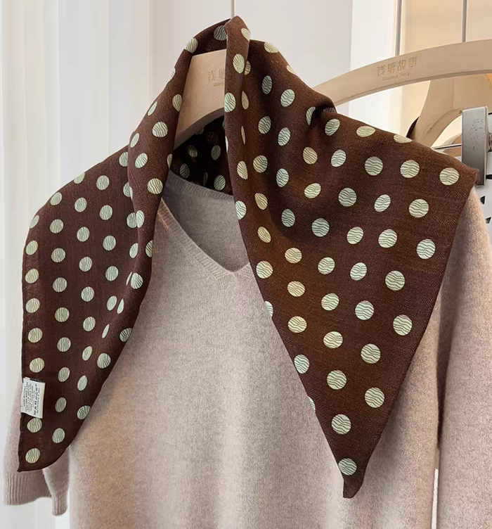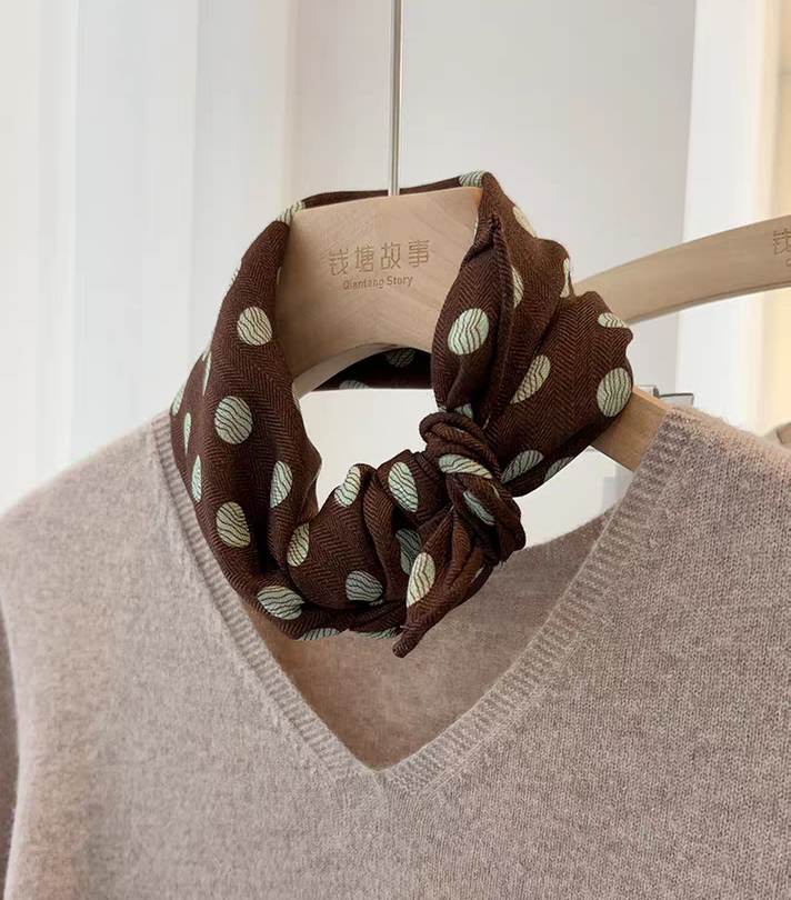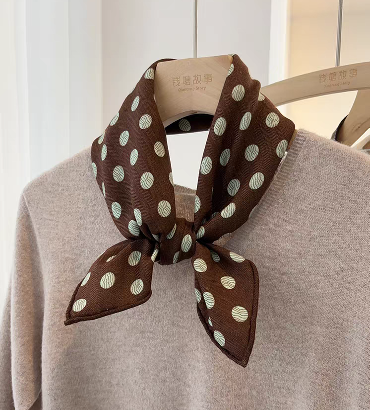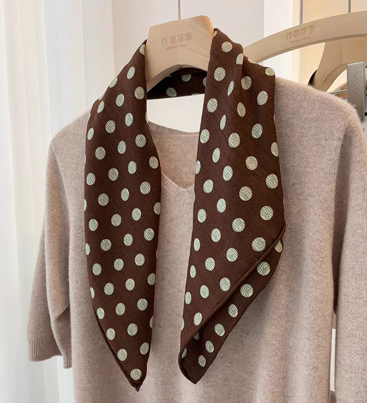 韩系复古咖色波点丝巾女美拉德系脖围巾配饰高级棕色方巾围脖护颈