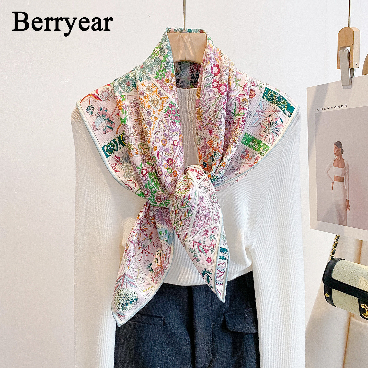 2025秋季新款护颈钻扣花朵丝巾女时尚百搭围巾纱巾多功能懒人围脖
