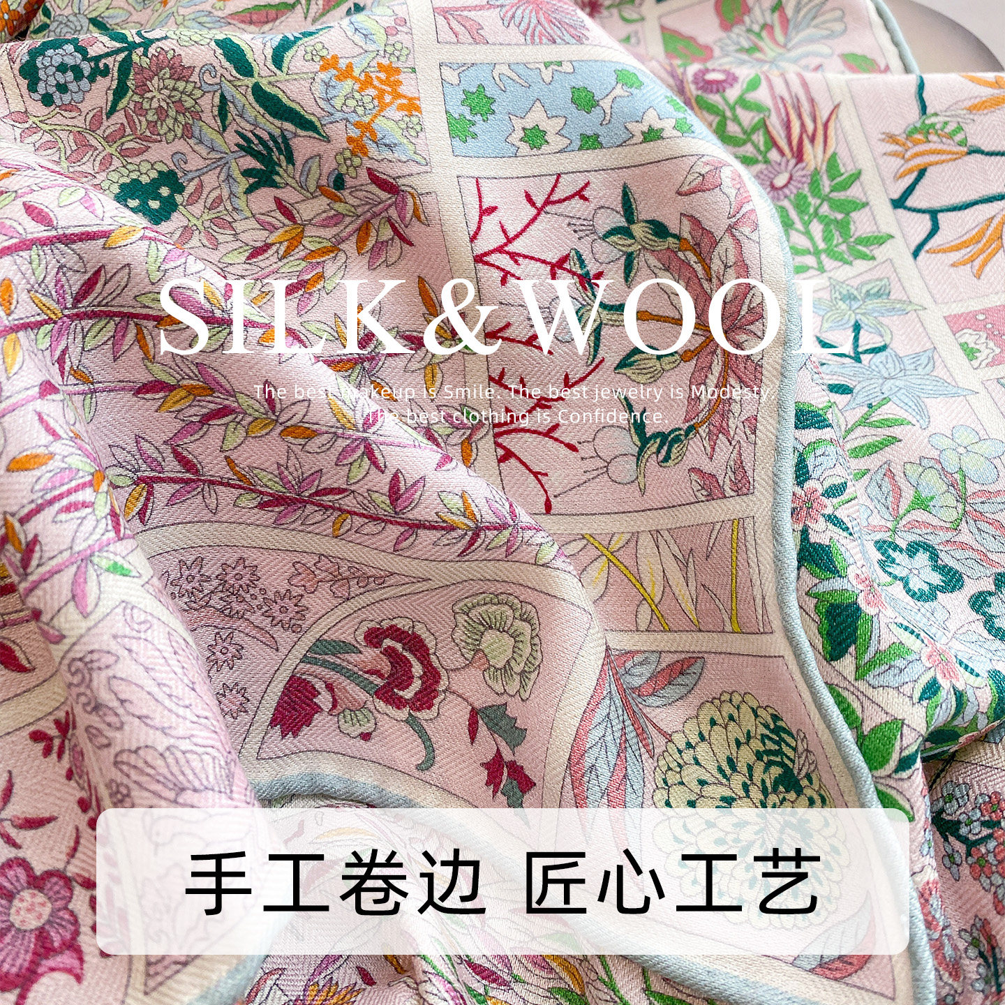 天猫粉色真丝羊毛围巾丝巾披肩女外搭2025新款秋冬高级感90丝毛大方巾