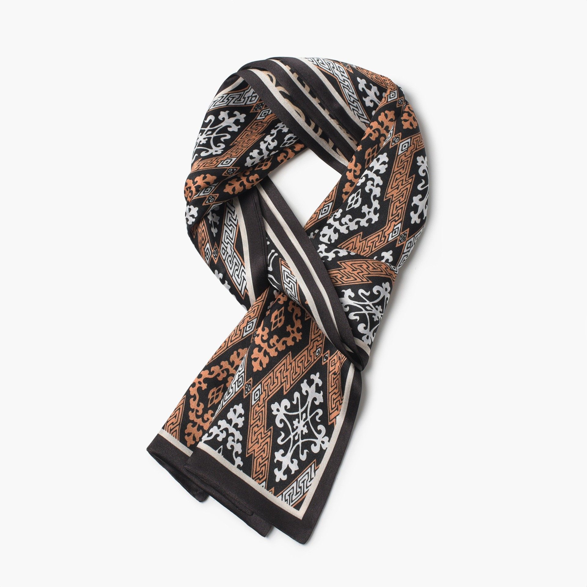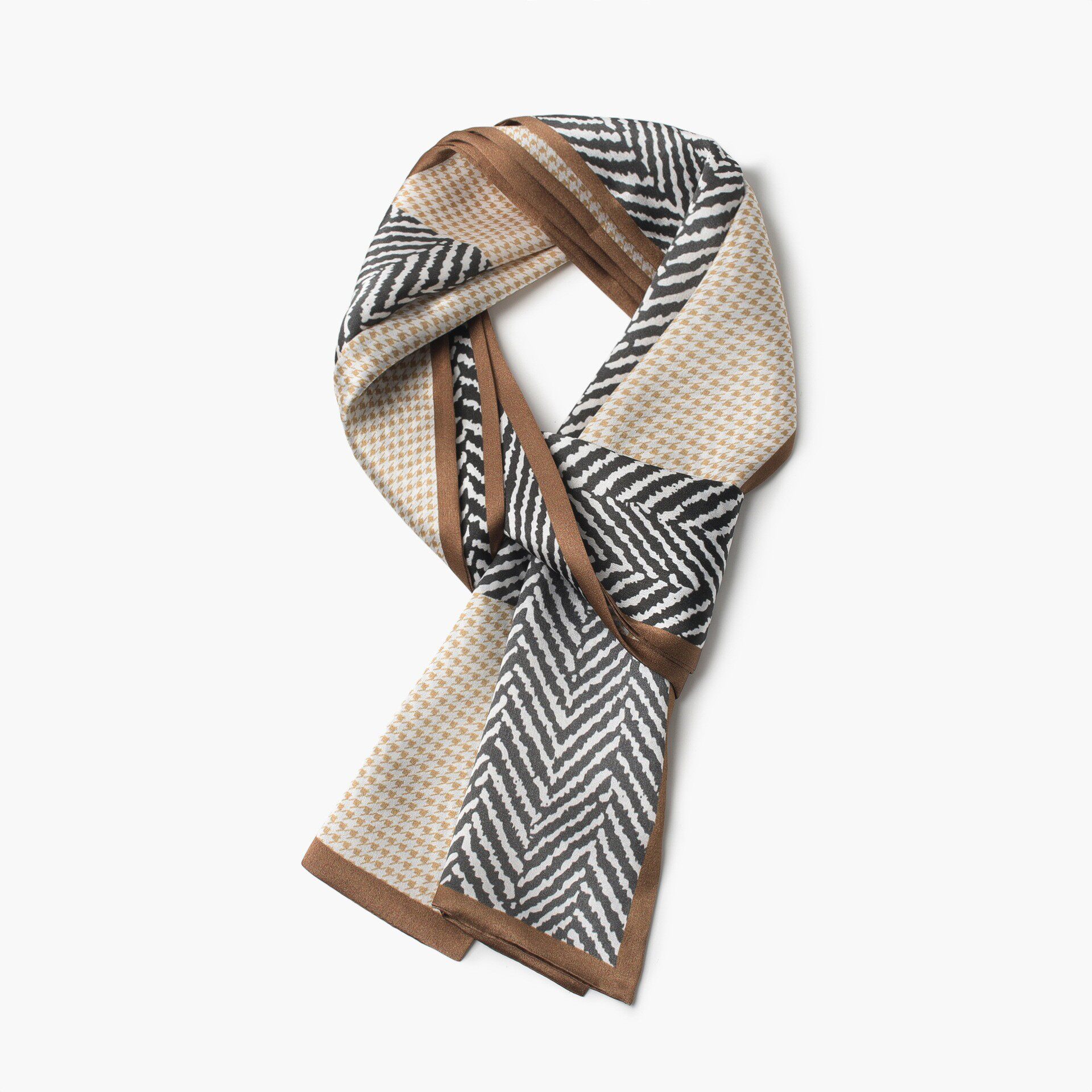 天长条丝巾女2025新款高级感系脖小领巾绑包咖色棕色黑白黑色白色