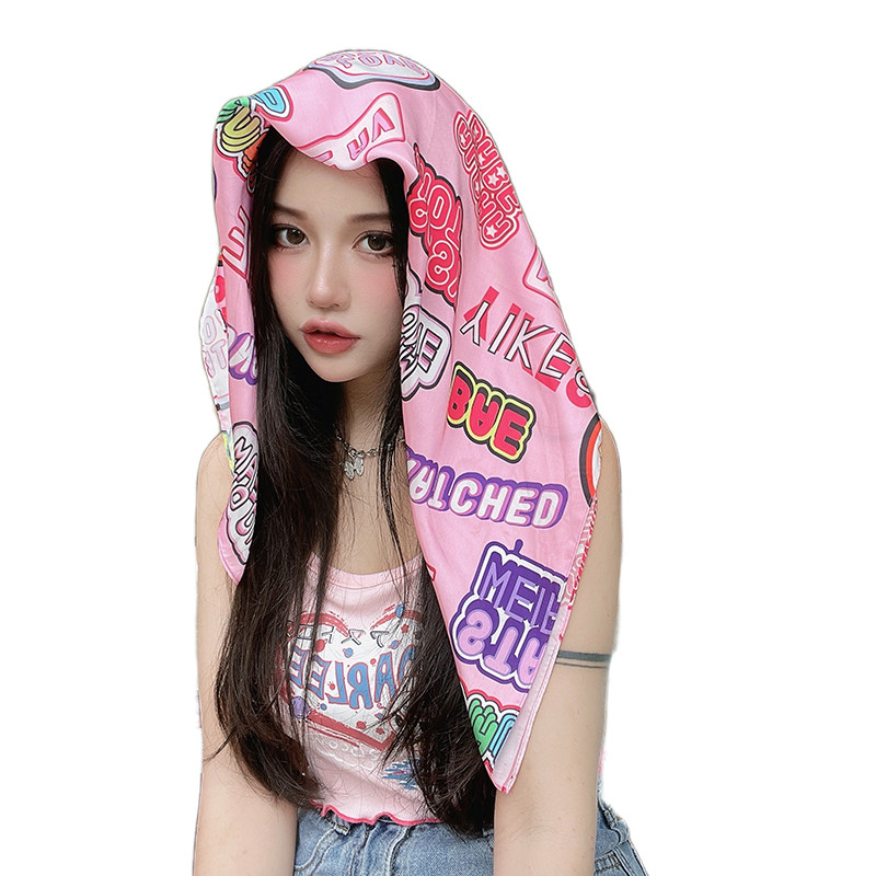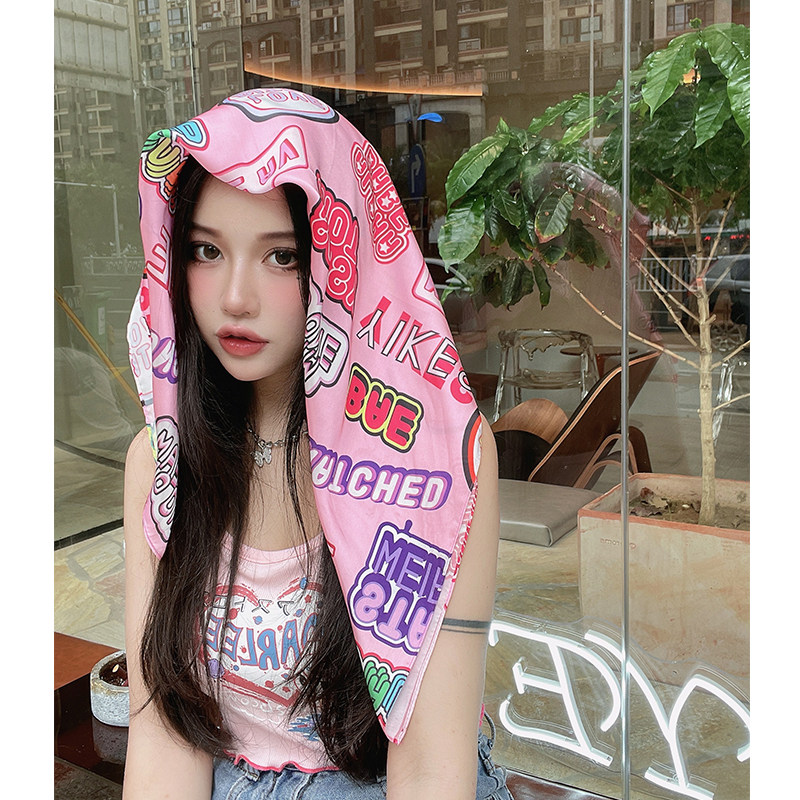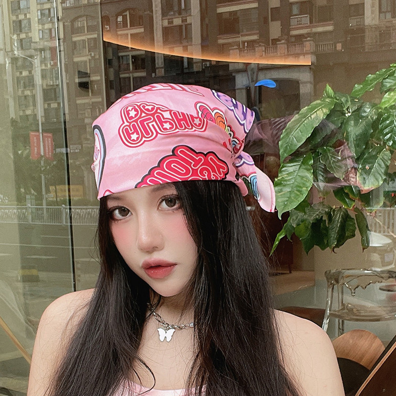 淘宝尤嘻岛辣妹y2k涩谷粉色方巾丝巾女抹胸腰带美式街头甜酷头巾包头