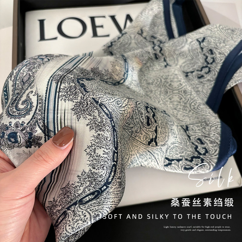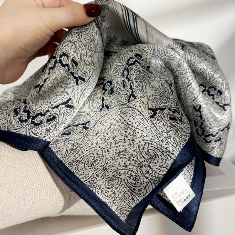 这款高级感灰色调真丝丝巾,甄选优质桑蚕丝材质,触感柔滑细腻,光泽自然雅致,尽显轻奢知性气质。经典灰调融合极简设计,百搭不挑肤色,轻松提升整体穿搭质感。无论是作为颈间围巾、头巾、包饰或腰间点缀,皆能展现优雅多变的时尚魅力。轻盈垂坠的质地,贴合肌肤舒适透气,四季皆宜。无论是职场通勤还是休闲出行,都能为造型增添一抹低调奢华的精致感。一条丝巾,多种佩戴方式,诠释现代女性的从容与品位,是提升气质不可或缺的时尚单品。