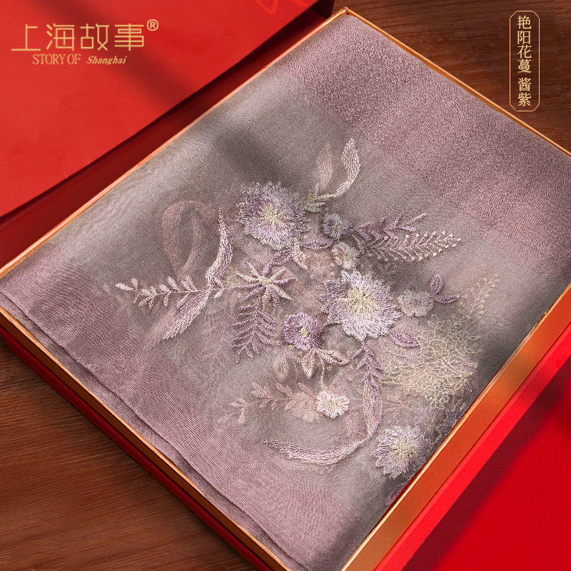 淘宝杭州丝绸刺绣真丝羊毛丝巾女高端送礼中国风妈妈旗袍披肩红色围巾