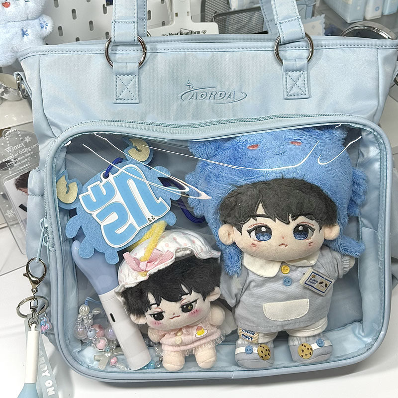 AORDA小食量斜挎单肩10cm娃包吧唧玩偶保护套追星制服蓝色微痛包