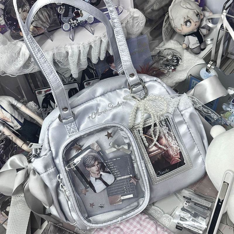 AORDA日系二次元黑色单肩斜挎娃包,专为喜爱二次元文化的萌系爱好者设计。包身采用经典黑色调,搭配精致丝带装饰与可爱吧唧(徽章)点缀,兼具甜美与个性。10cm容量设计,小巧轻便,适合收纳小食、零钱、口红等随身小物,是“小食量”女生的理想选择。波士顿包型结构稳固,斜挎单肩两用,背法灵活,日常出行或漫展打卡皆宜。“痛包”风格彰显独特审美,细节处体现日系精致工艺,是展现个性与爱好的时尚配饰,轻松打造吸睛的二次元造型。