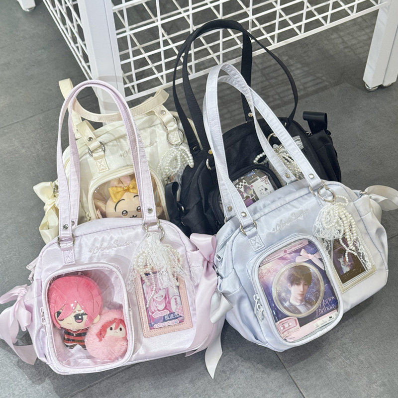 天猫AORDA 日系二次元黑色单肩斜挎10cm娃包丝带吧唧小食量波士顿痛包