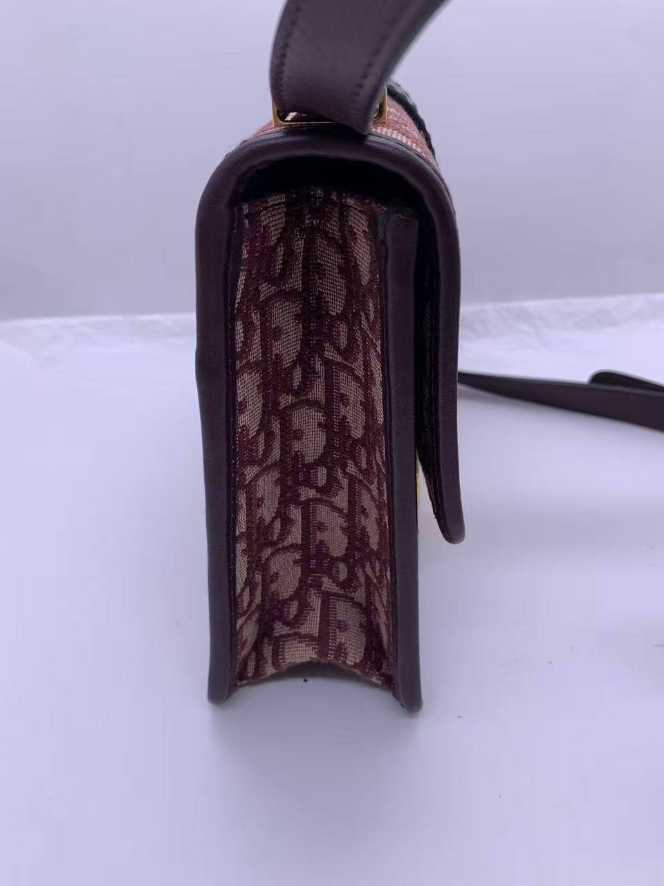 淘宝95新Dior/迪奥酒红色老花帆布蒙田30金扣单肩斜挎包女款