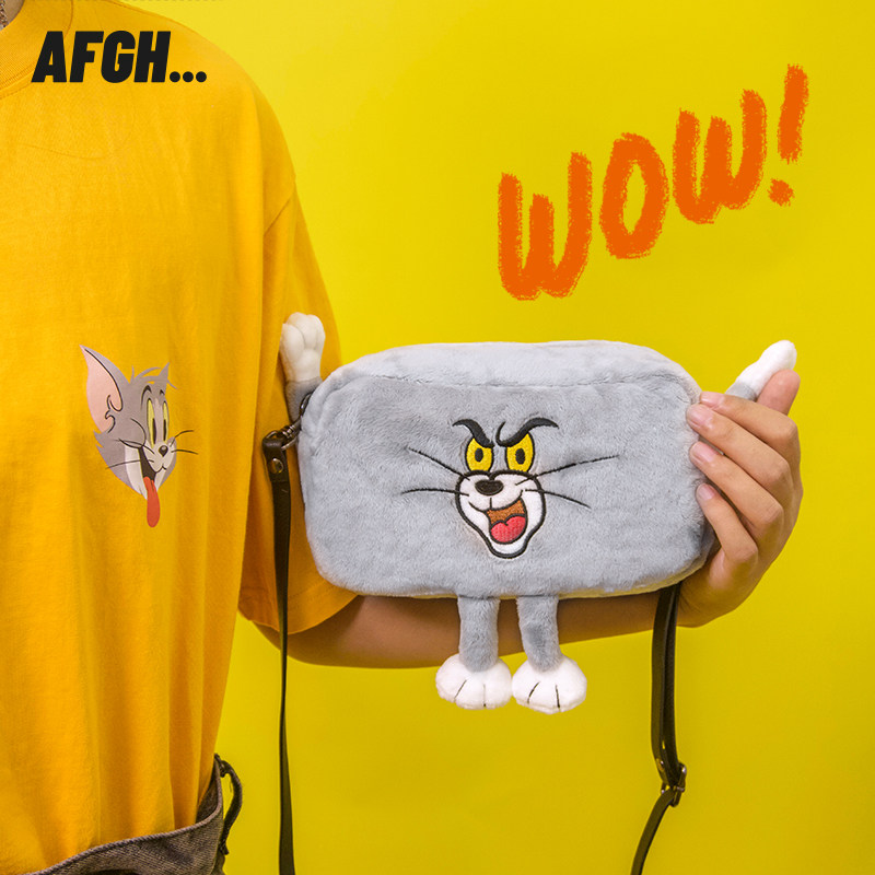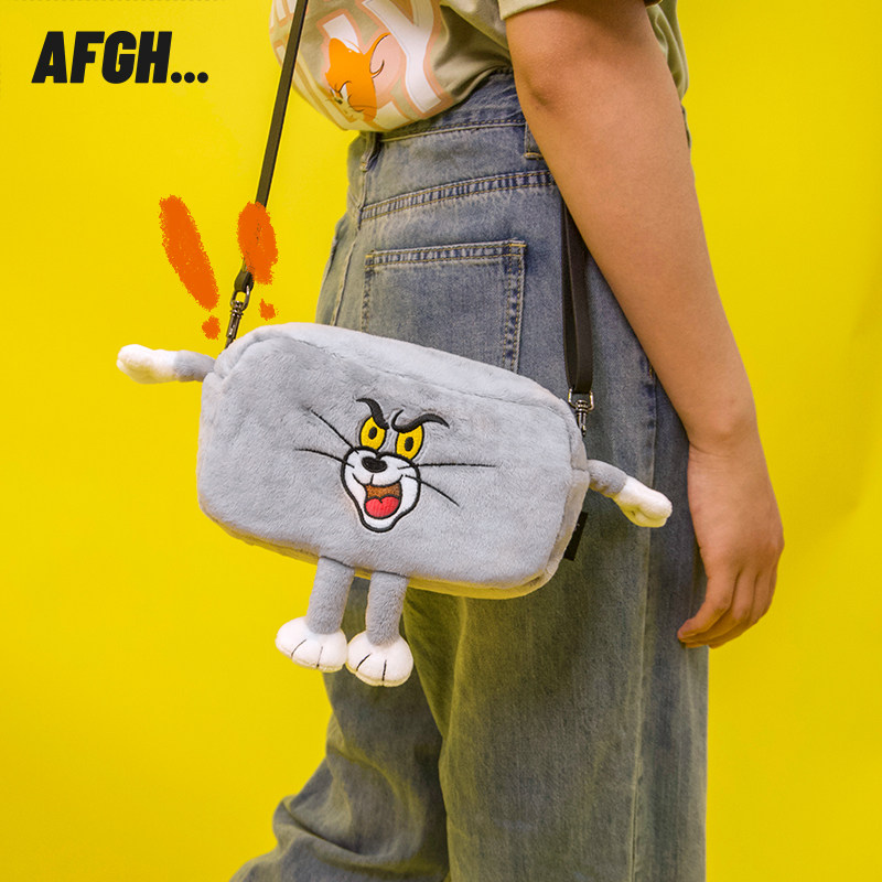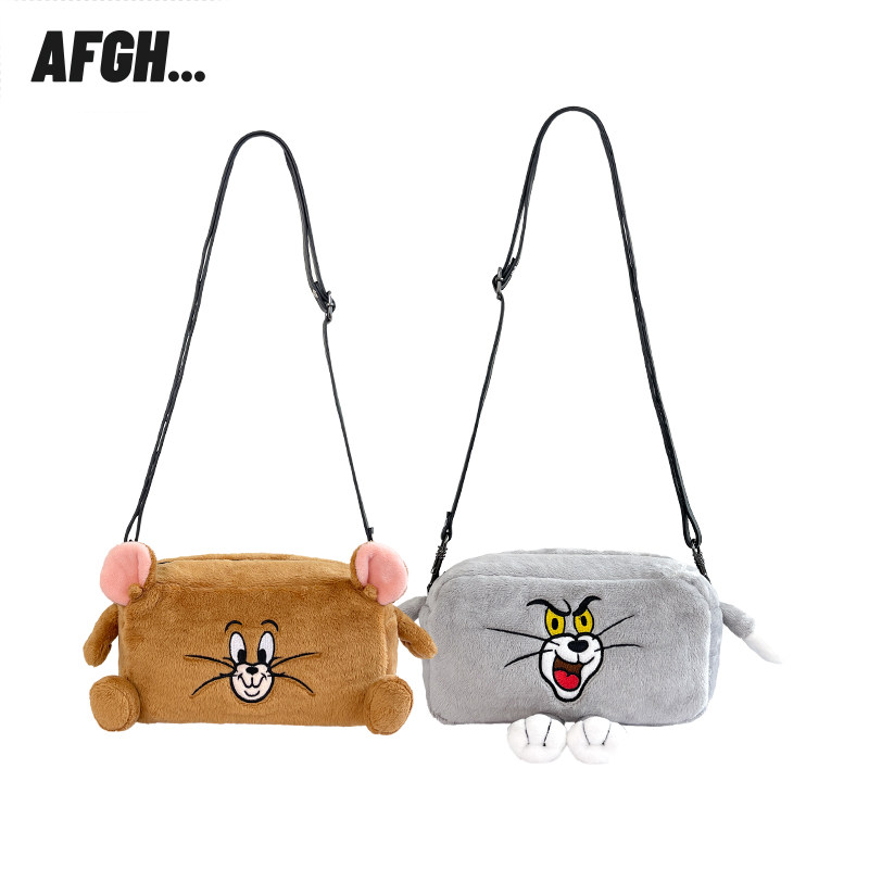 淘宝华纳正版AFGH猫和老鼠双面斜挎小包JERRY杰瑞毛绒手机包TOM单肩包