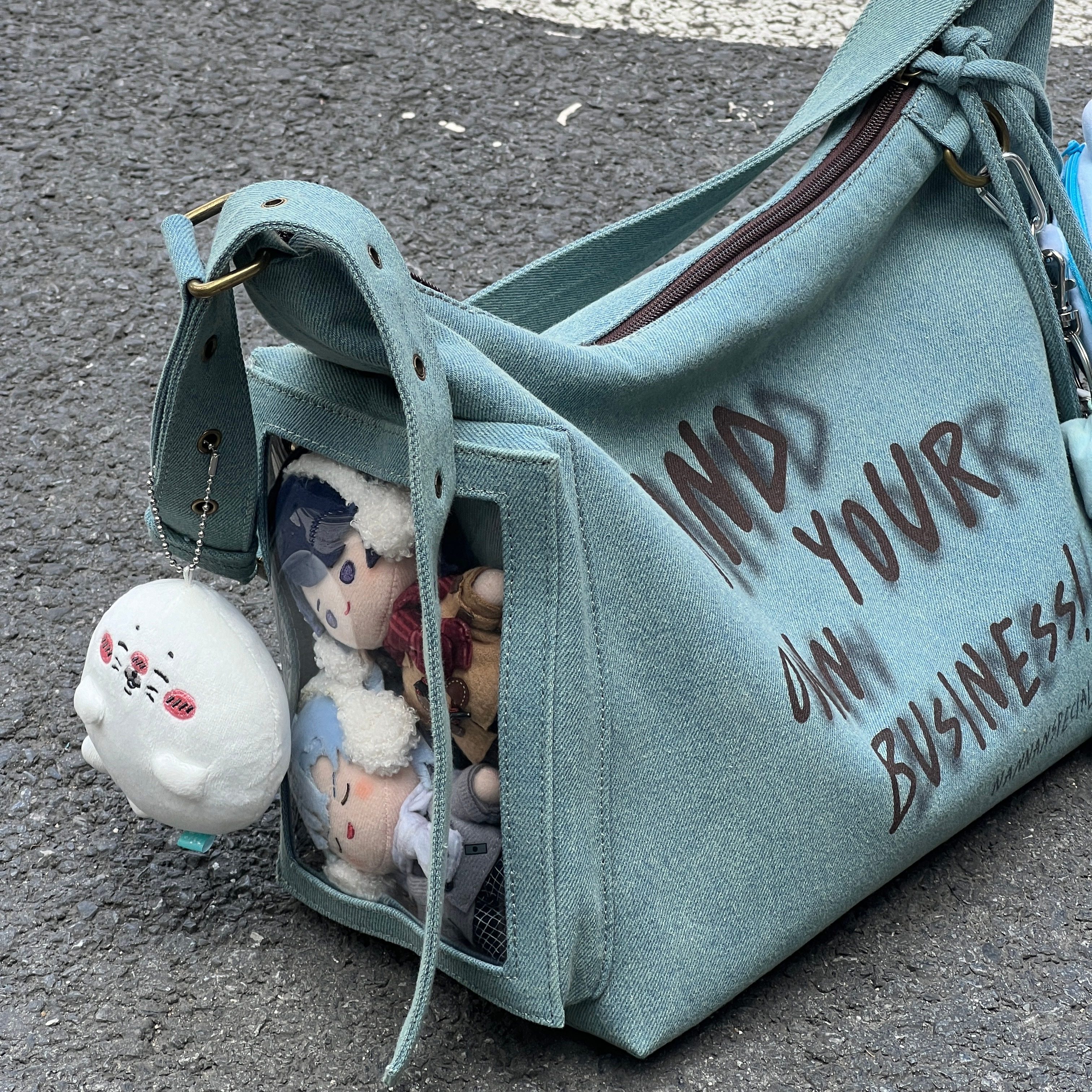 AORDA小食量斜挎单肩10cm娃包吧唧玩偶保护套追星制服蓝色微痛包