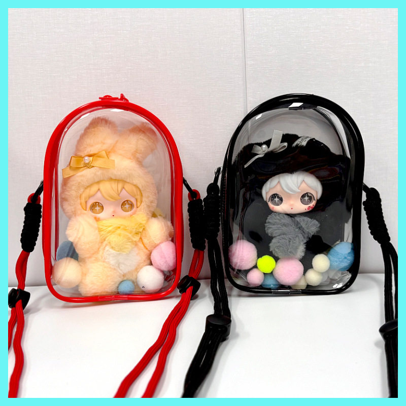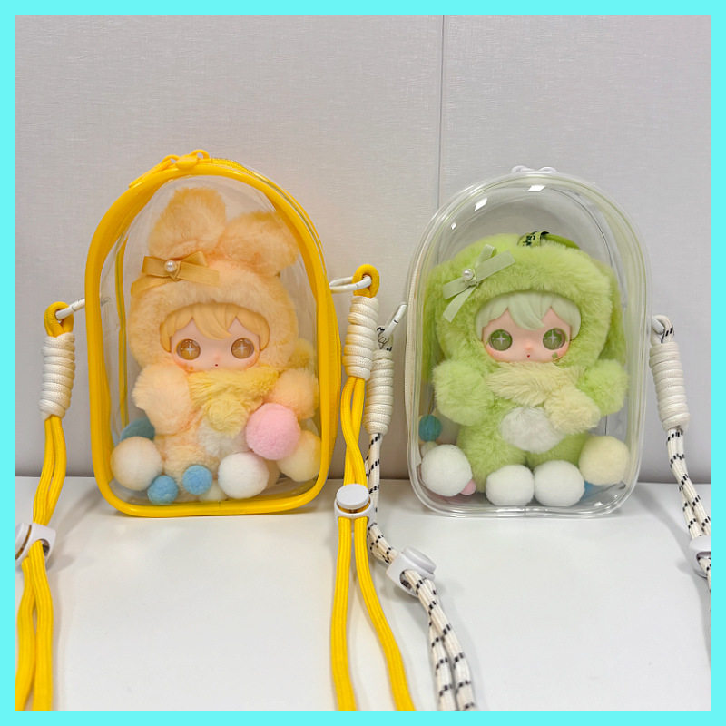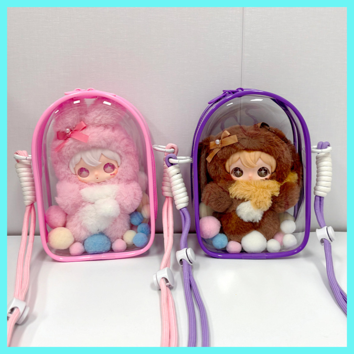 淘宝娃包15cm痛包bjd晒娃包透明外出斜挎放娃包兔闪闪毛绒谷子防尘袋