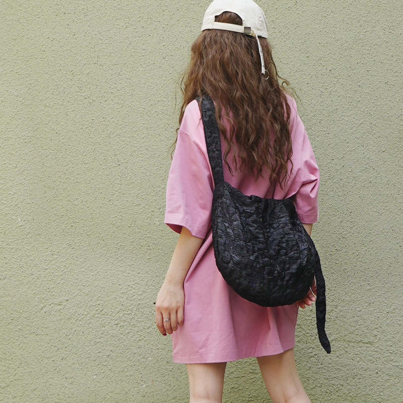 波普先生原创小众泡泡布斜挎包,融合个性冷淡风与山本耀司式极简美学,打造独特气质潮品。采用轻盈挺括的泡泡布材质,纹理细腻,触感独特,兼具防水与耐用性。包型灵感源自经典饺子包,圆润廓形搭配利落线条,低调中彰显设计感。可调节斜挎带设计,实用百搭,适合日常通勤或街拍造型。整体色调以黑、灰、米白等中性色为主,强调质感与留白,诠释“少即是多”的时尚哲学。无论是搭配大衣、西装还是休闲装,都能轻松提升整体穿搭格调,是追求小众品味与高级感的潮人必备单品。