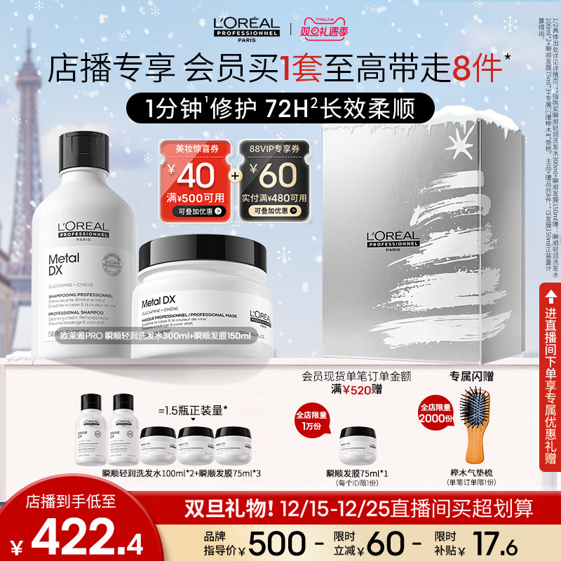 天猫【店播专享】柔顺修护烫染毛躁沙龙 欧莱雅PRO瞬顺洗发水发膜