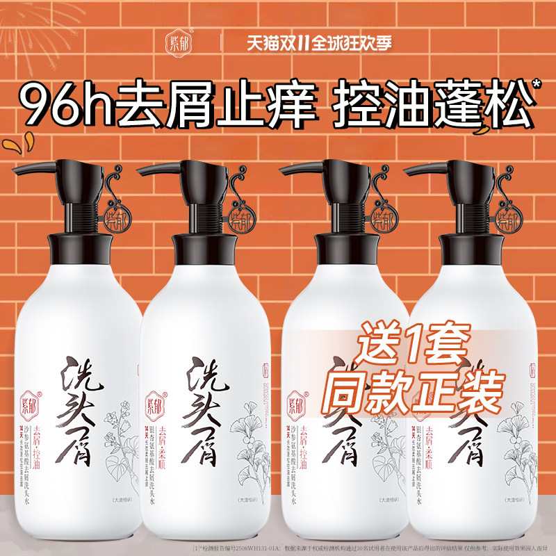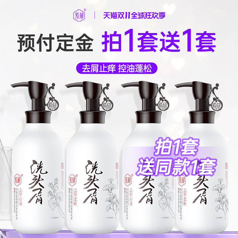 天猫【买1套送1套】紫郁洗发水控油蓬松去屑止痒洗发露丰盈柔顺洗头膏