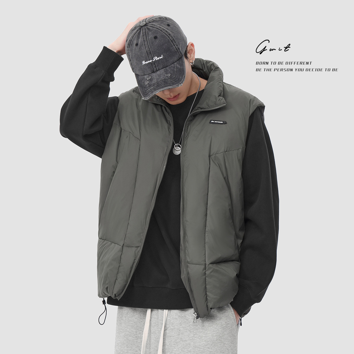 GWIT90绒美式潮牌解构冬季上衣外套,是一款融合潮流设计与实用保暖的男士羽绒马甲。采用高品质90绒填充,轻盈蓬松,锁温性能卓越,适合寒冷季节外穿或内搭。解构主义剪裁打破传统廓形,不对称细节与多口袋设计彰显个性街头风格。外层选用耐磨防风面料,内里加绒处理,提升穿着舒适度。背心式设计兼顾灵活性与保暖性,可轻松搭配卫衣、夹克或大衣,打造层次穿搭。无论是城市通勤还是户外出行,GWIT90绒羽绒马甲都以美式潮酷美学与卓越功能性,成为冬季衣橱的必备单品。
