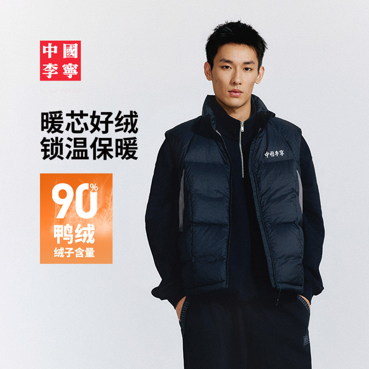 淘宝中国李宁羽绒马甲男女新款男装上衣冬季反光宽松运动服AMRV081