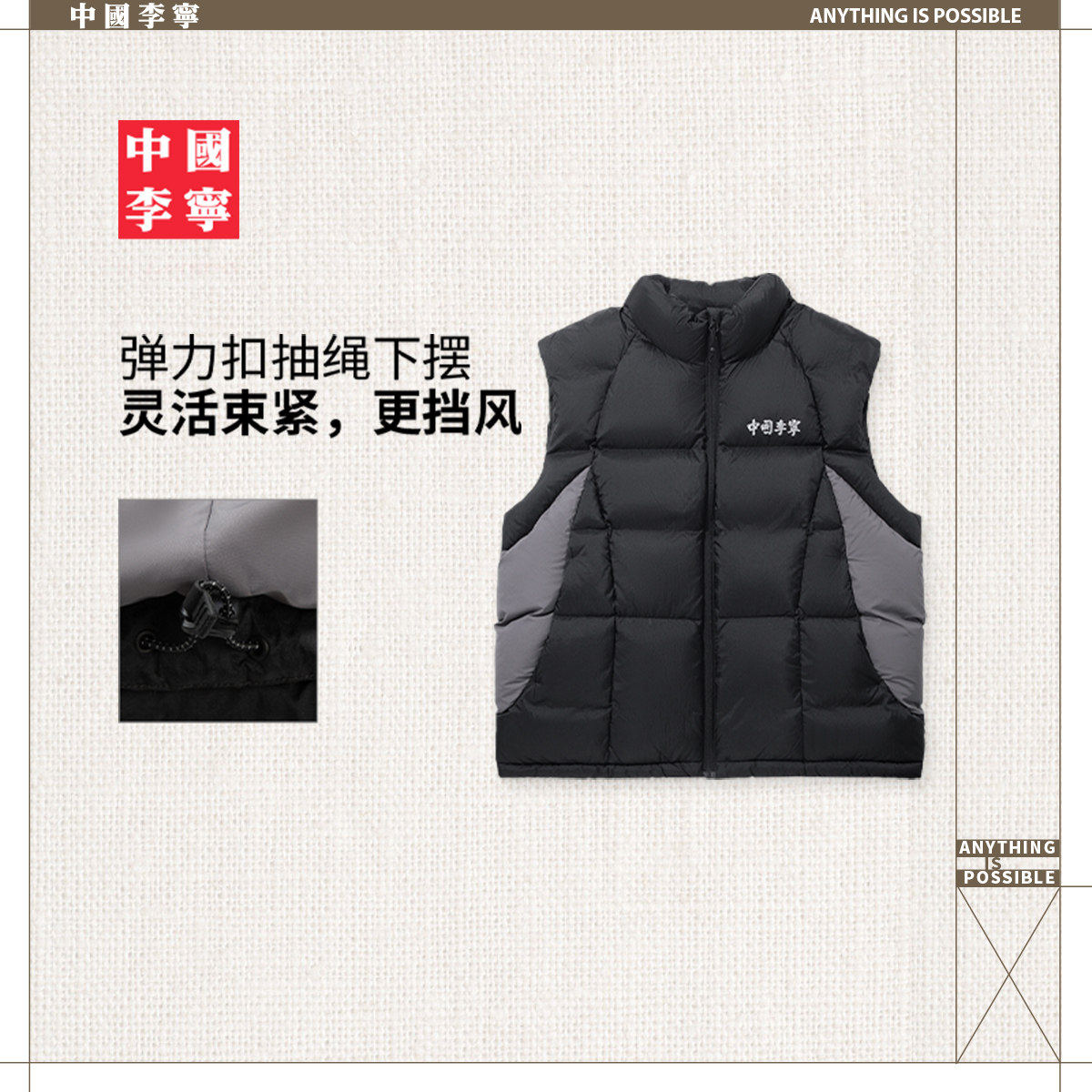 中国李宁羽绒马甲男女新款AMRV081,融合时尚设计与实用功能,专为冬季打造。采用高品质羽绒填充,轻盈保暖,有效抵御严寒;宽松版型设计,兼顾舒适与潮流感,适合男女同款穿搭。马甲表面融入反光元素,提升夜间运动安全性,彰显品牌科技感。多口袋设计增强实用性,方便收纳随身物品。无论是日常通勤、户外休闲还是轻运动场景,都能轻松驾驭。作为中国李宁运动时尚系列的代表单品,AMRV081以简约大气的剪裁和国潮风格,展现年轻活力与自信态度,是冬季衣橱不可或缺的时尚保暖之选。