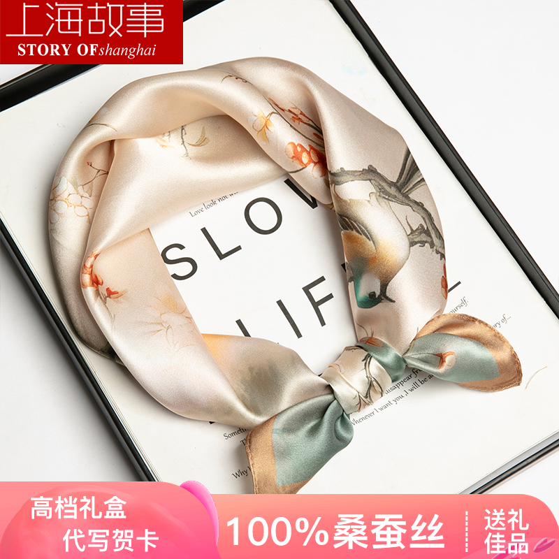 淘宝母亲节上海故事100%真丝系脖小方巾精致丝巾女2025新款桑蚕丝围巾