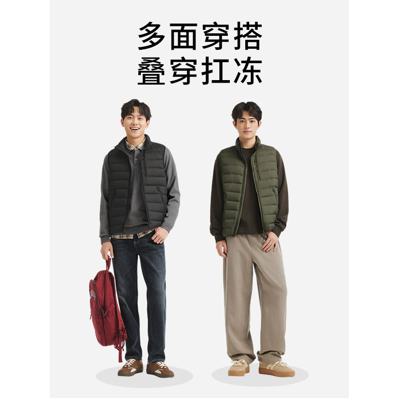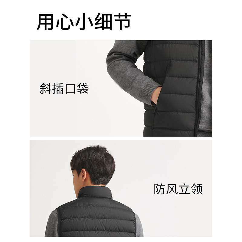 鸭鸭羽绒马甲男款时尚户外运动V领无袖羽绒内胆新款鸭绒坎肩女士