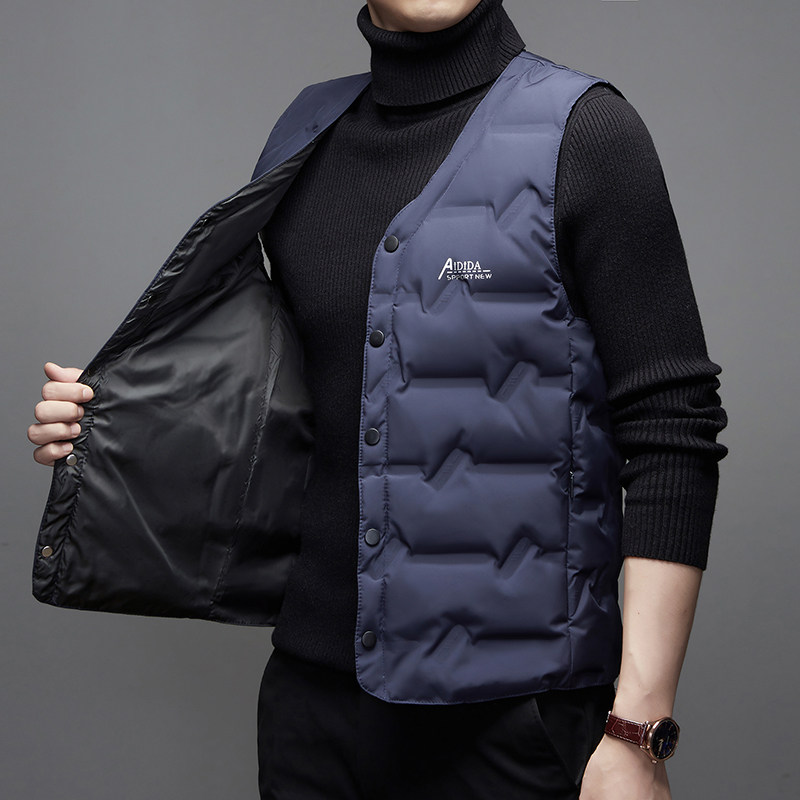 淘宝新款秋冬季内穿白鸭绒羽绒背心马甲冬季男士爸爸保暖背心轻薄马夹