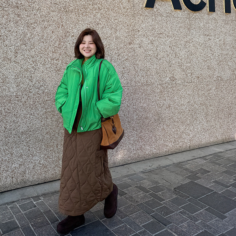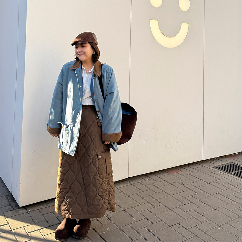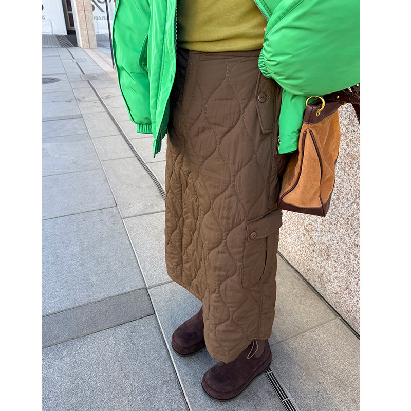 淘宝胖mm冬季工装风夹棉半身裙木子理想大码女装绗缝口袋中高腰棉半裙