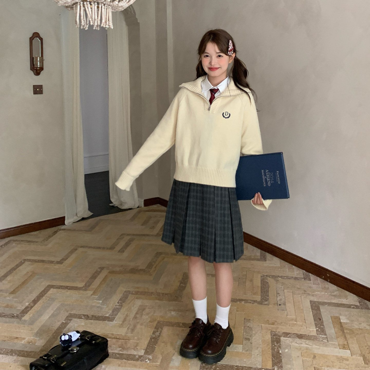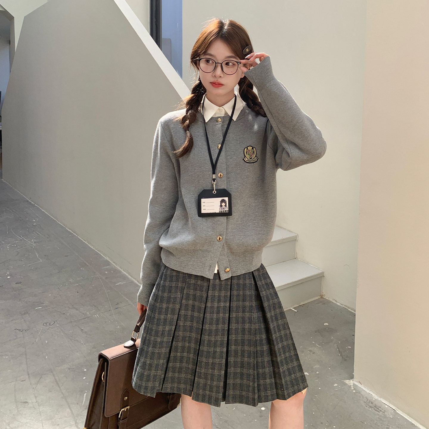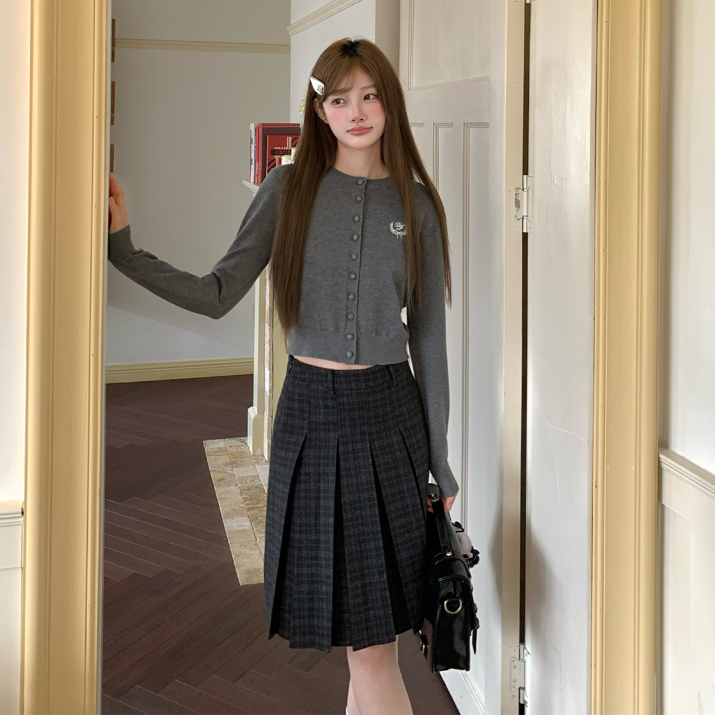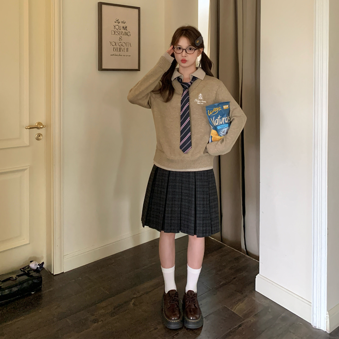 淘宝东京岁时记jk秋冬新款百褶A字半身裙复古黑棕格子百褶裙中长裙女