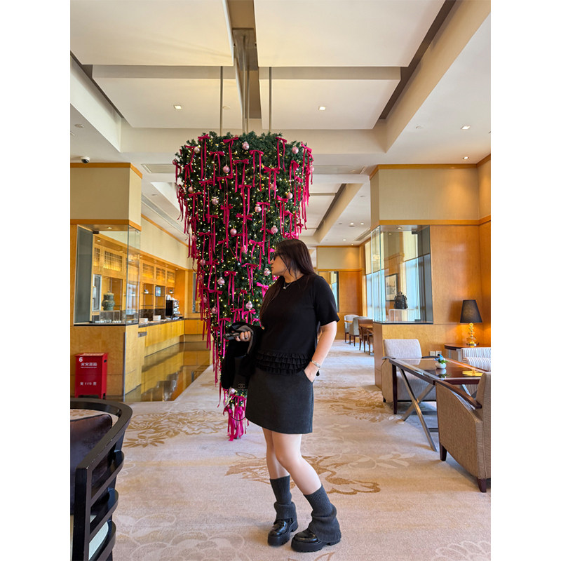 天歌莉娅黑色丝绒半身裙女2025新款冬季穿搭高腰伞摆长裙1E3R2B23D
