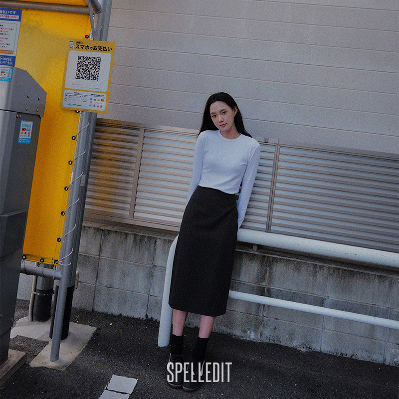 天猫SPELLEDIT2025冬季新品羊毛中长裙简约百搭加厚直筒裙子半身裙女