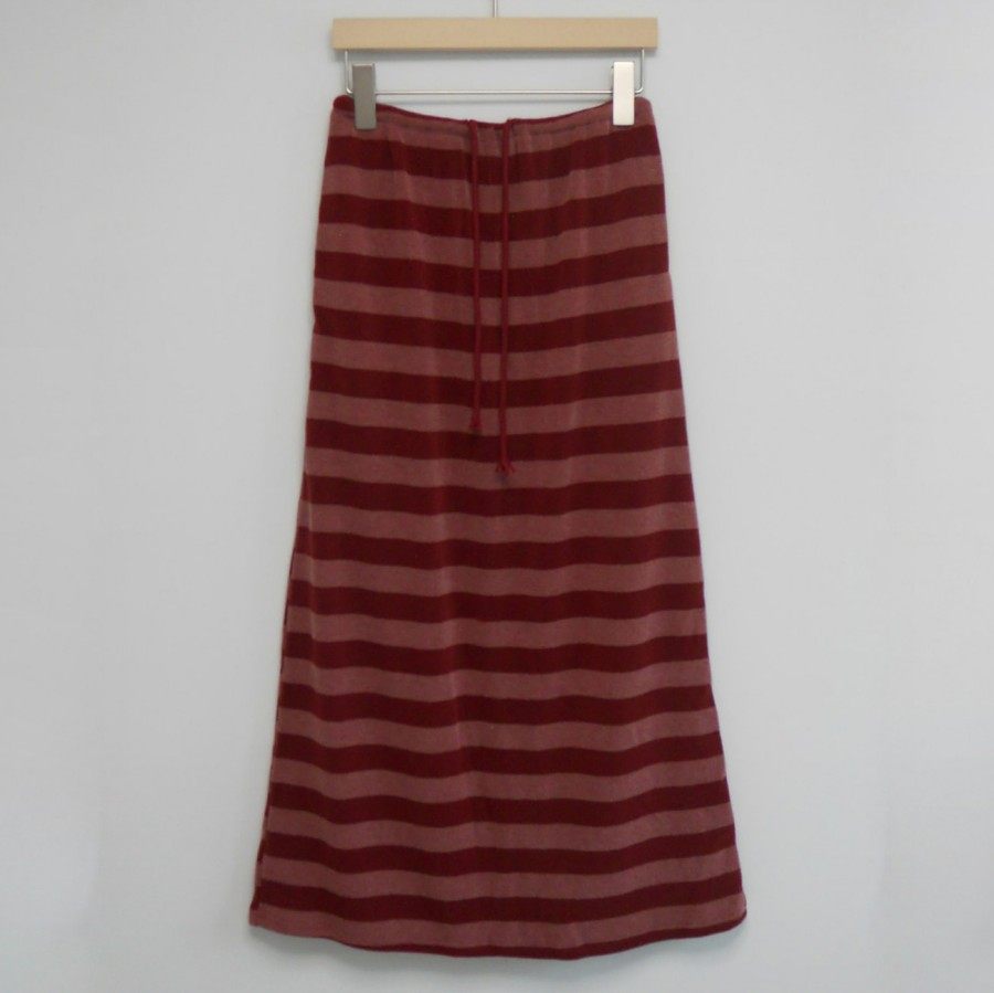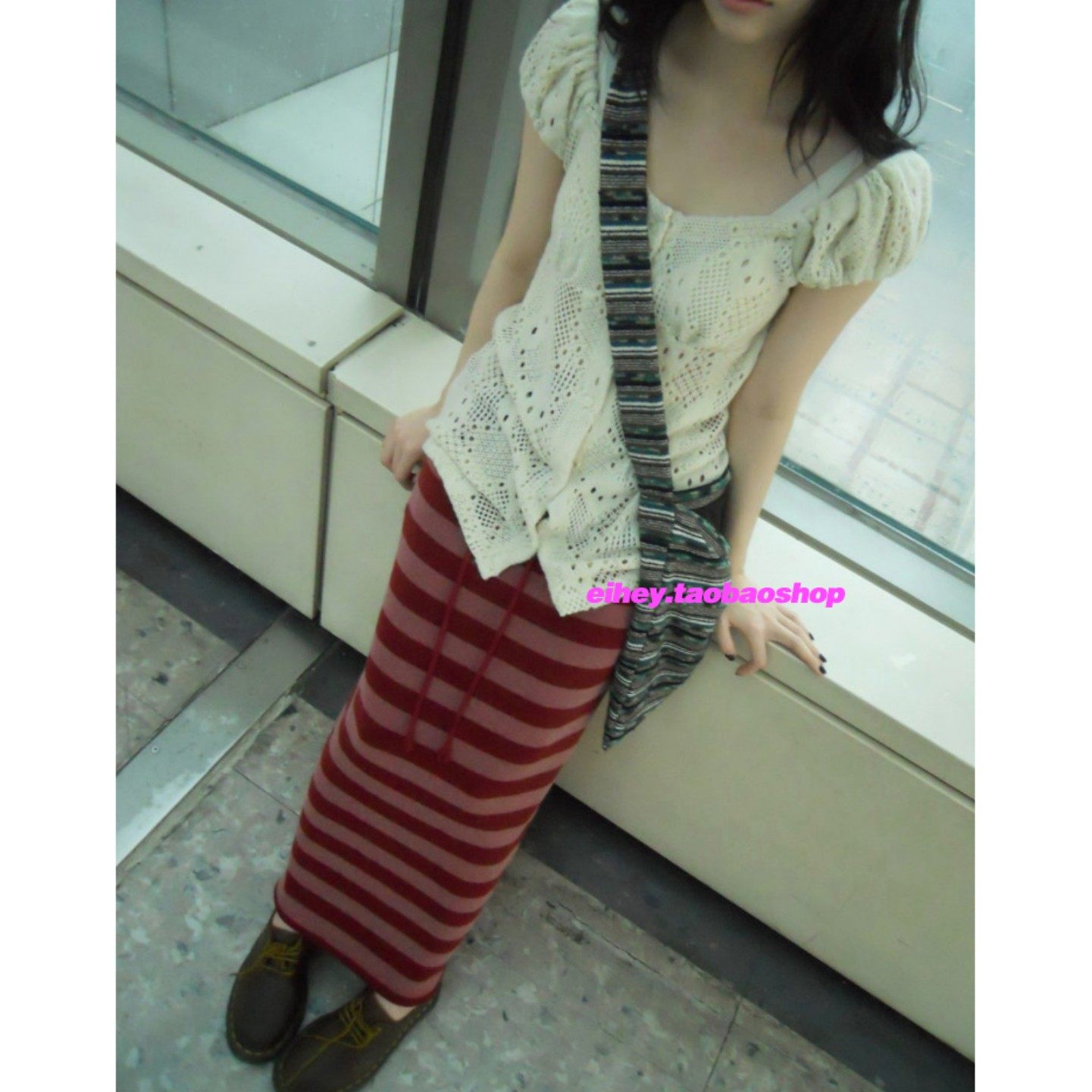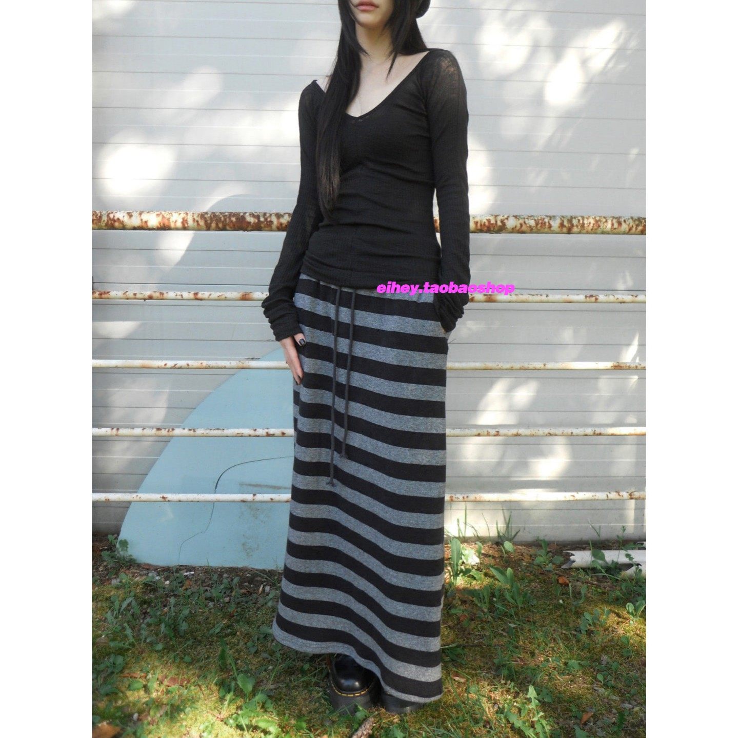 淘宝eihey诶嘿秋季简约慵懒舒适咖色条纹拼色抽绳绑带休闲半身长裙女