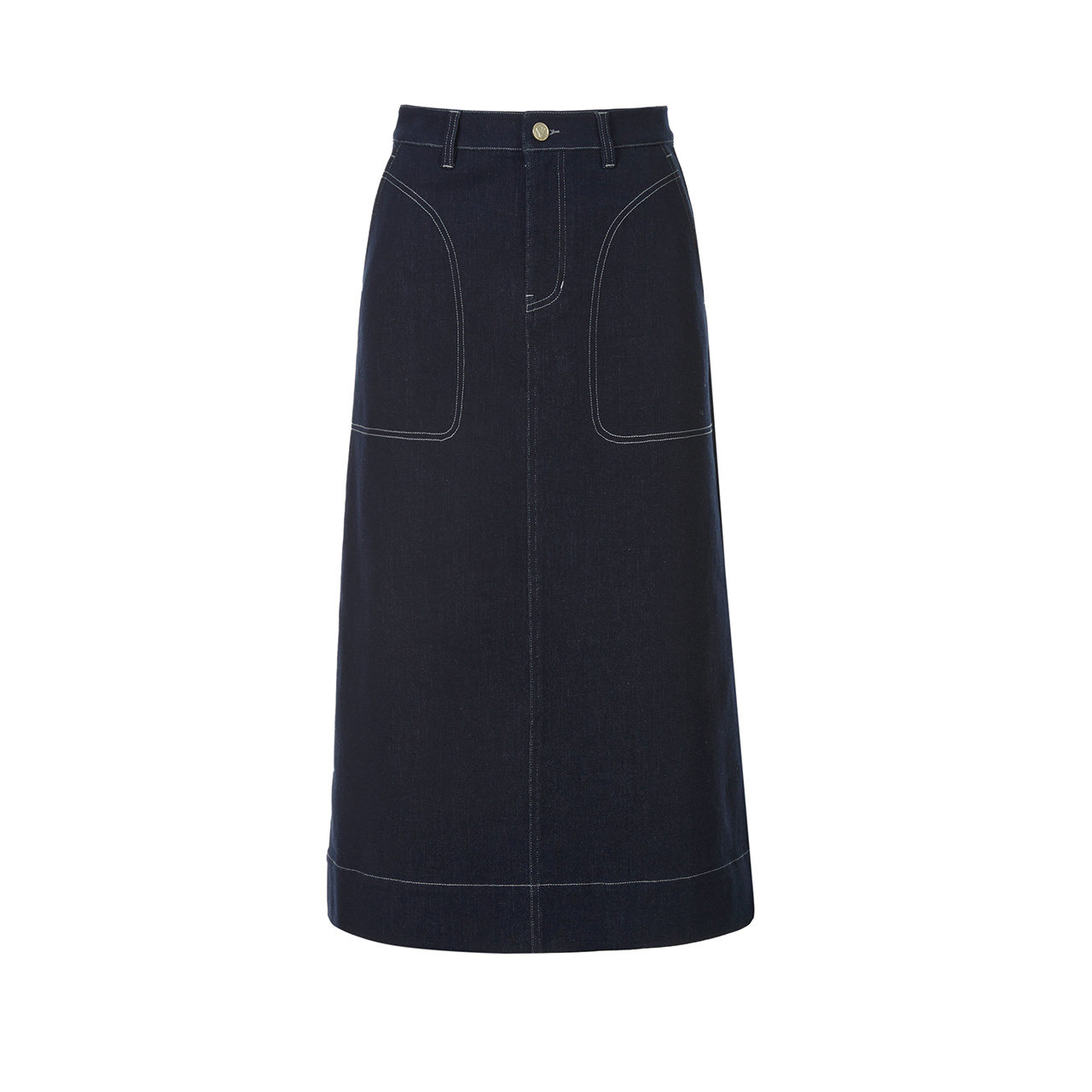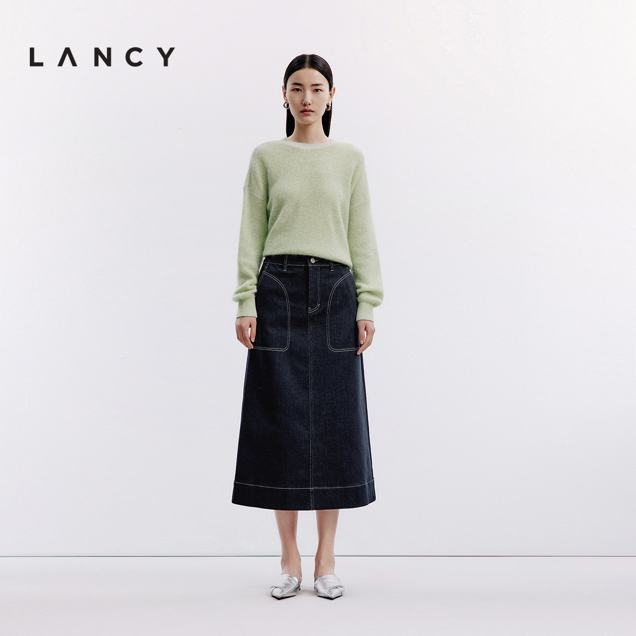 天猫LANCY/朗姿2024新款深蓝牛仔直筒中长半身裙休闲通勤H牛仔半裙女