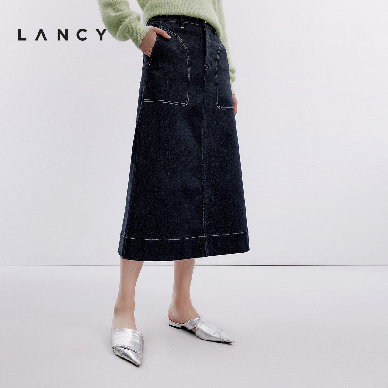 LANCY/朗姿2024新款深蓝牛仔直筒中长半身裙,融合经典牛仔质感与现代简约设计,打造优雅通勤与休闲日常的理想单品。采用高品质深蓝色丹宁面料,挺括有型,H版型剪裁修饰腿型,中长长度恰到好处,兼顾得体与时髦。高腰设计拉长身形比例,搭配利落直筒廓形,轻松穿出利落气质。无论是搭配衬衫、针织衫还是简约T恤,都能展现知性干练又不失柔美的女性魅力。精致车线与细节处理彰显品牌匠心,是都市女性衣橱中不可或缺的百搭半裙,轻松应对办公、约会与周末出行等多种场合。