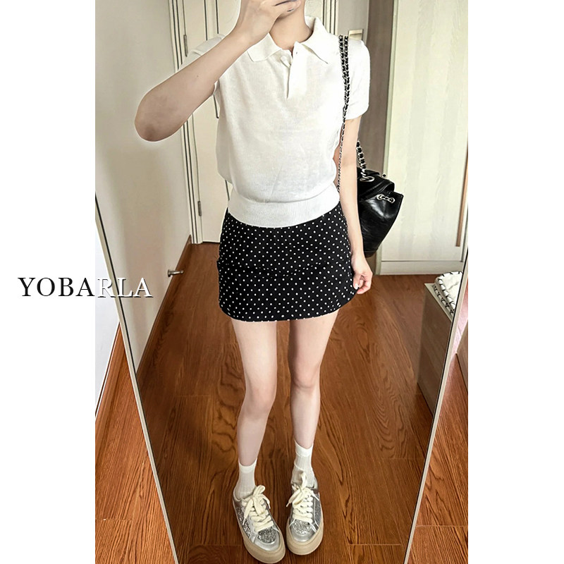 淘宝黑色波点印花休闲短裙女夏季大码胖mm遮肚显瘦梨形身材a字半身裙