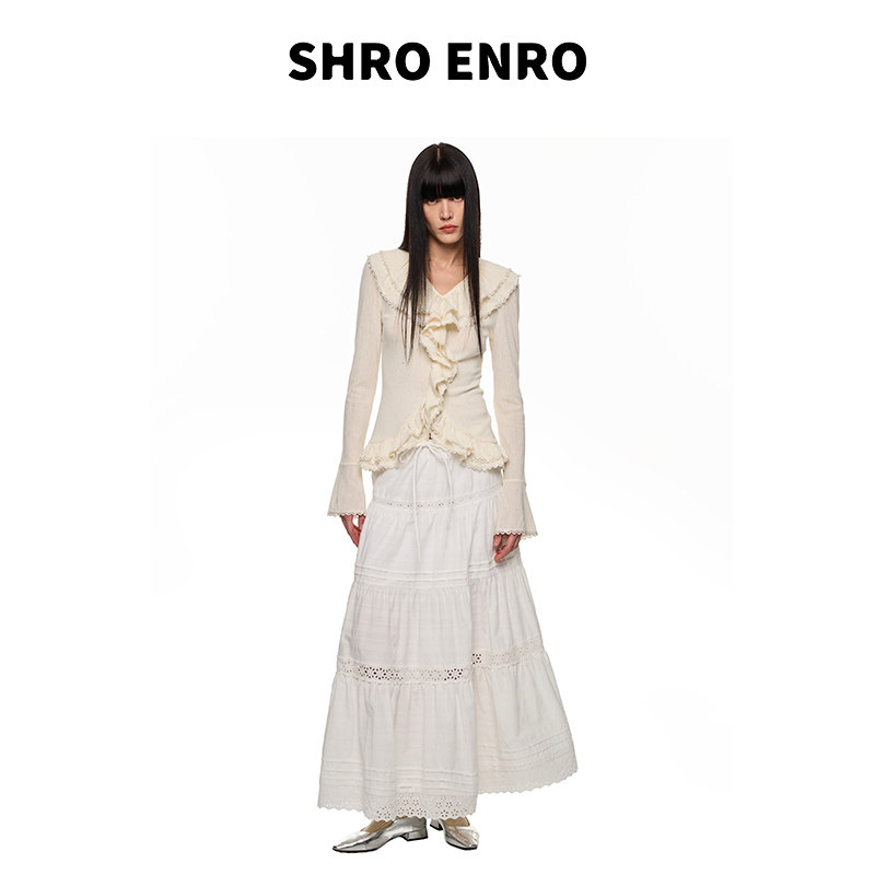 天猫【白鹿同款】SHRO ENRO2025秋季新款法式镂空花边A字长裙女半身裙
