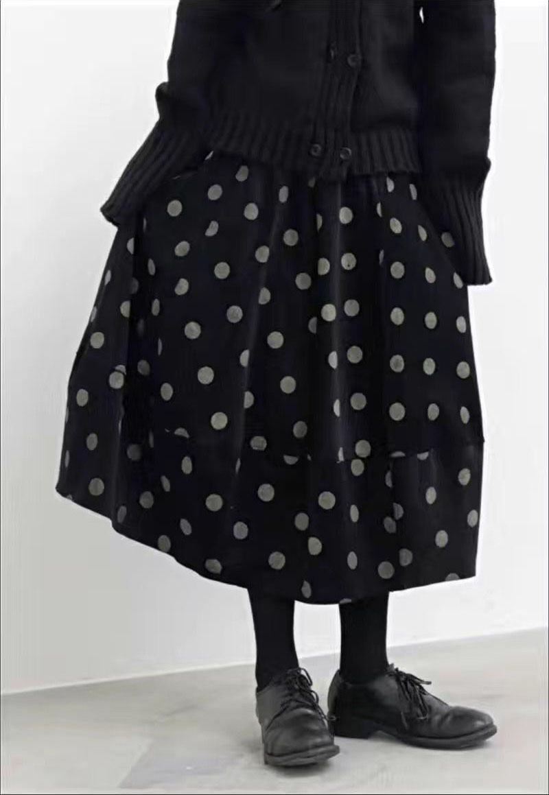1996年推出的这款日系森女风波点灯芯绒半身裙,以复古小众设计诠释秋冬温柔气质。采用质感厚实的灯芯绒面料,搭配经典波点元素,营造出怀旧又文艺的氛围。裙身独特的花苞感剪裁,在腰部自然蓬松,中长版型优雅遮肉,行走间尽显灵动。虽因风格独特略显“不讨喜”,却恰恰吸引追求个性与复古美学的女性。整体低调而不失细节,适合搭配针织衫或短靴,打造日系森系穿搭。这条裙子不仅是单品,更是一种生活态度的表达——不争不抢,自有风情。