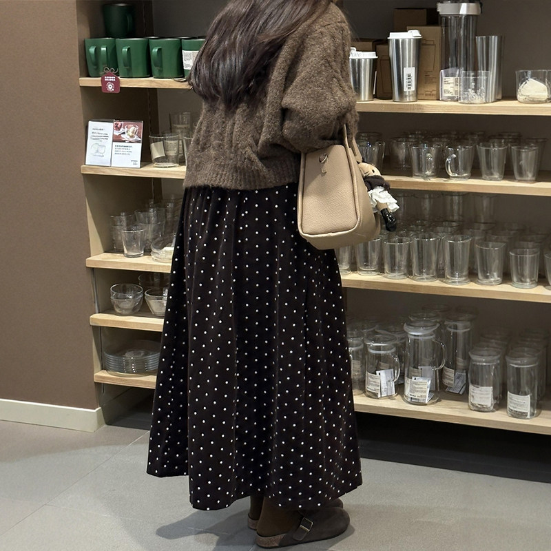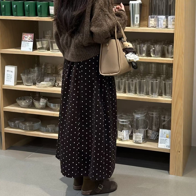 淘宝美拉德咖色加绒灯芯绒波点半身长裙女冬季大码a字梨形伯克利裙子