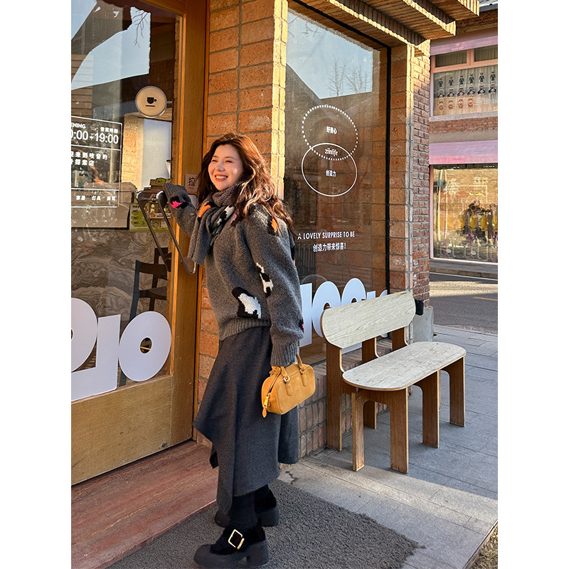 天歌莉娅针织半身裙女秋冬2025新款流行穿搭独特八片裙厚款高腰伞裙