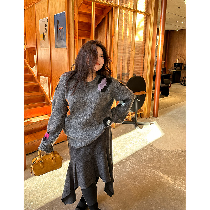 DM100大码百分百女装微胖mm冬季纯色百搭肌理针织伞摆长款半身裙